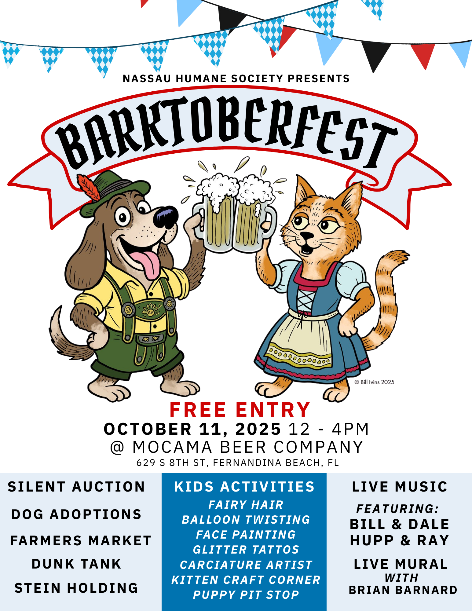 Mocama Beer Company 629 S Eighth St, Fernandina Beach, FL, United StatesNEW NAME, SAME MISSION, MORE FUN! We're all grown up-Pasta 4 Paws is officially 21, and we're celebrating with our biggest event yet! Join us for a FREE fun-filled, family-friendly day packed with live music, delicious food, craft beer, games, kids' activities, dog adoptions, and our legendary silent auction. You'll also find a vibrant marketplace…
